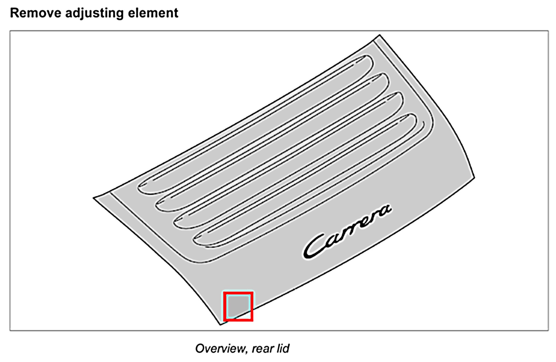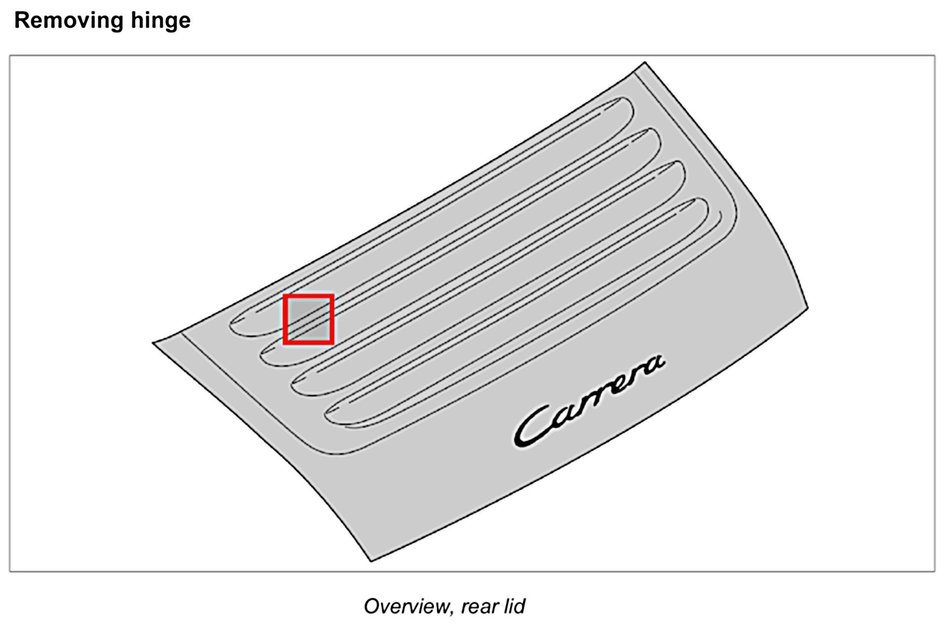 Remove upper part of rear lid lock. Refer to Removing and installing upper part of rear lid lock - removing
