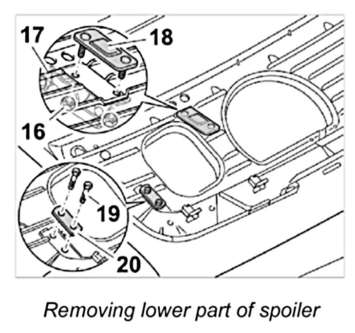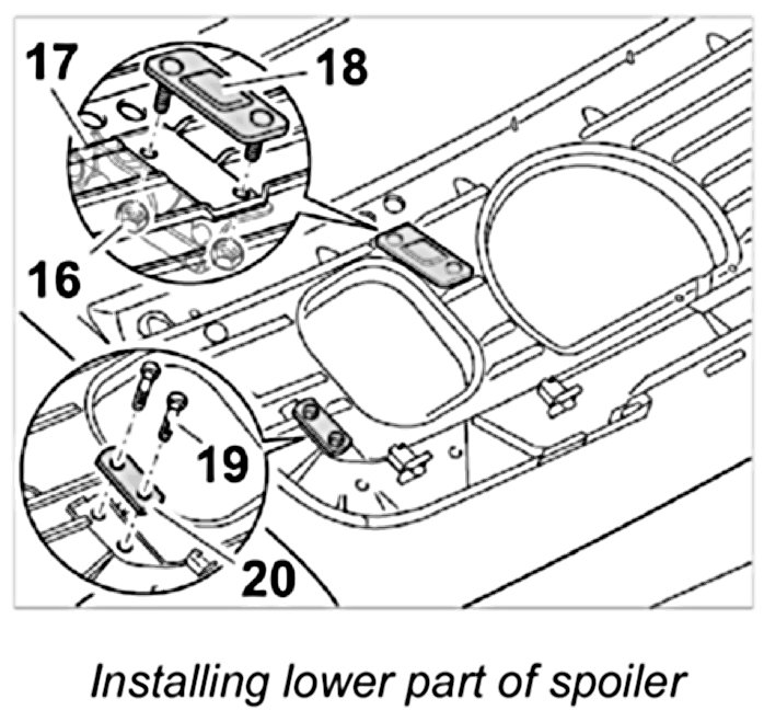 2. Position the plate -20- on the lower part of the spoiler. Tighten M6 fastening screws -19-.
