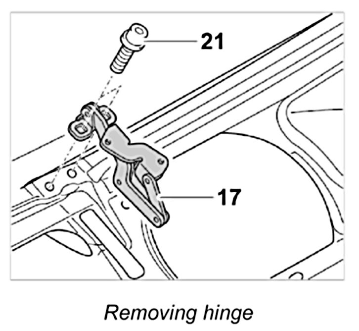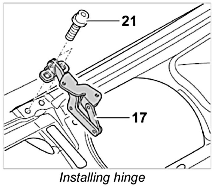 1. Unscrew fastening screws -21- from the hinge -17-.