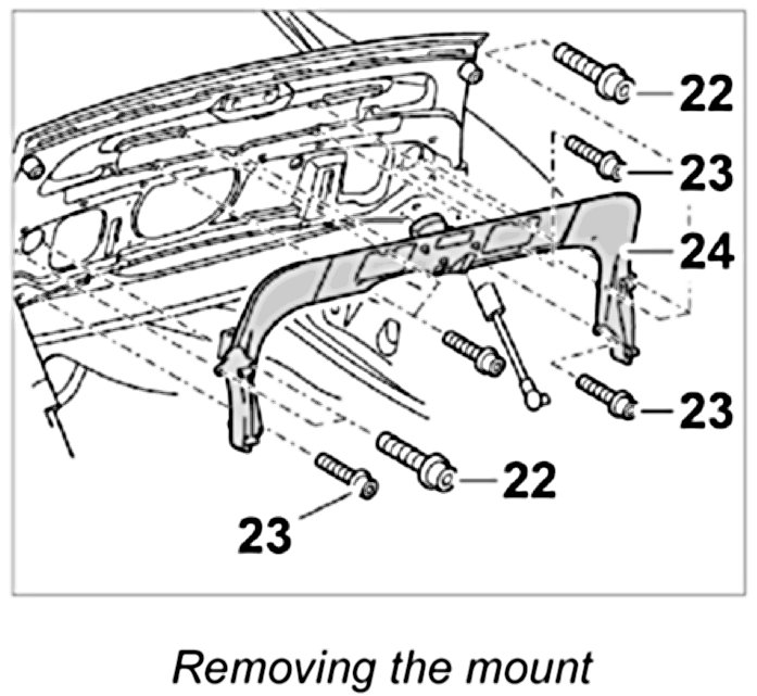1. Unscrew the fastening nuts -16- from the upper part of the spoiler and the hinge -17-. Remove the threaded plate -18-.