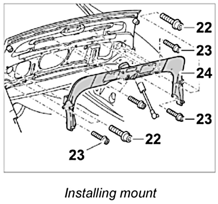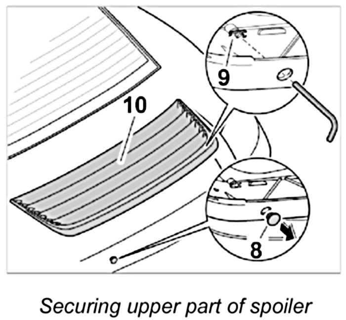 CAUTION: Lower part of spoiler must not be secured too tightly to the mount