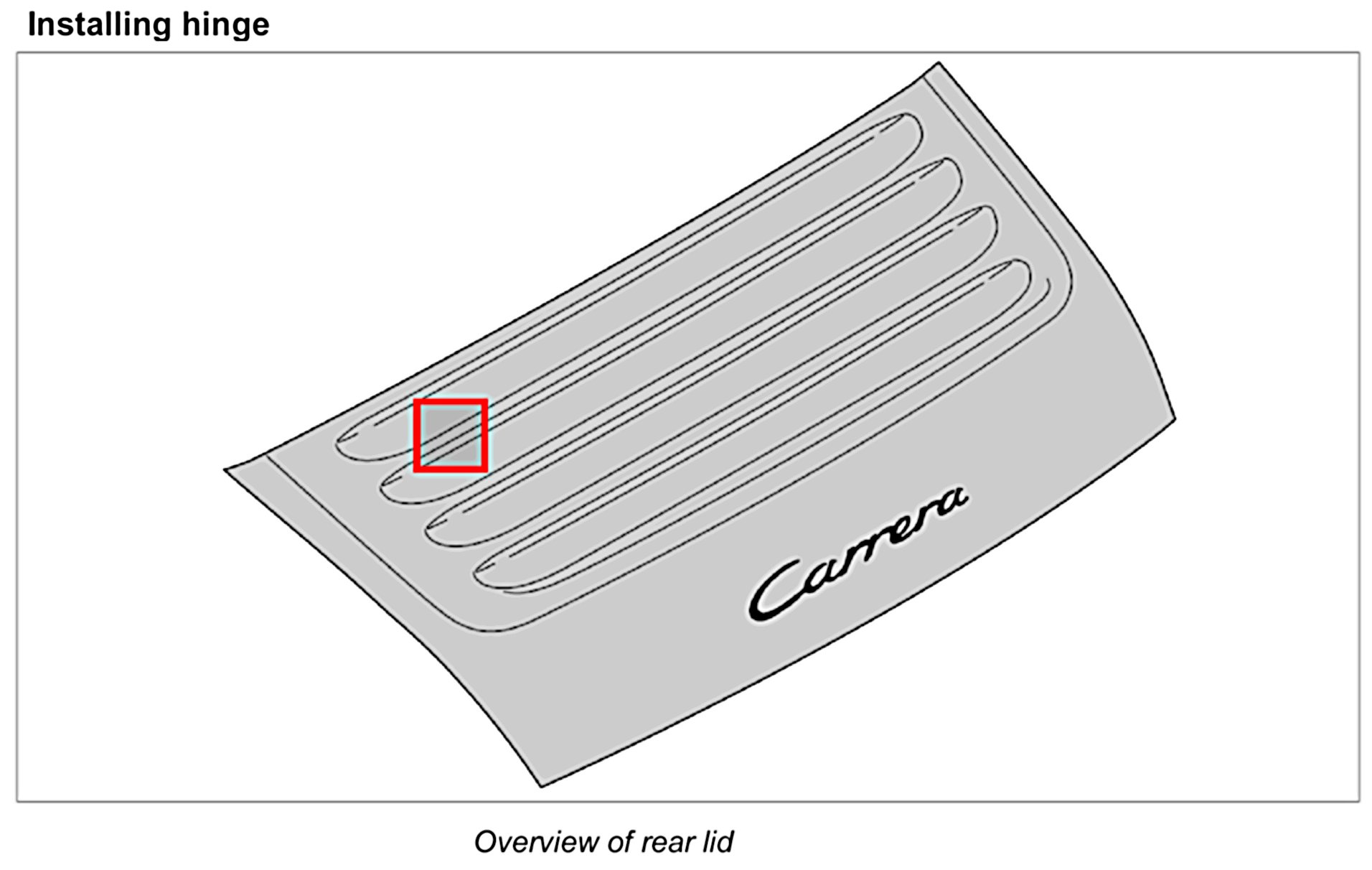 Install rear lid. Refer to Removing and installing rear lid - installing