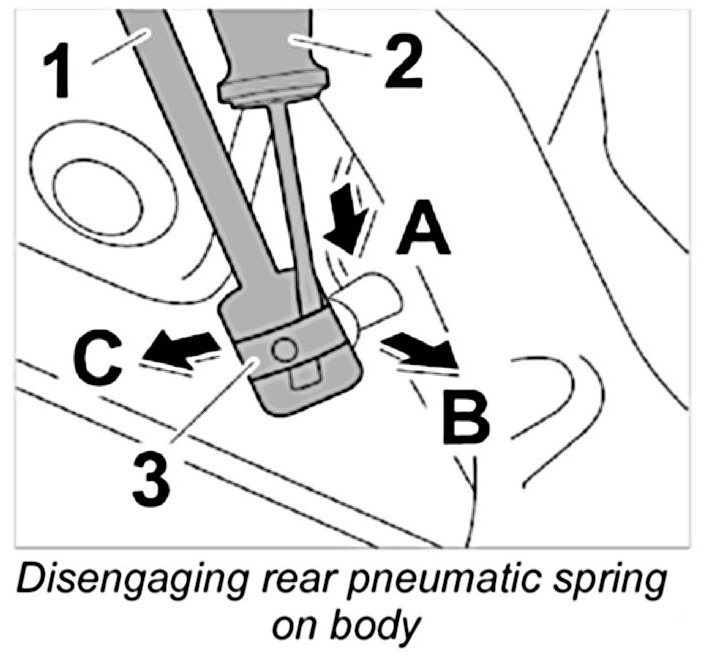 Removing rear pneumatic spring at the body'
