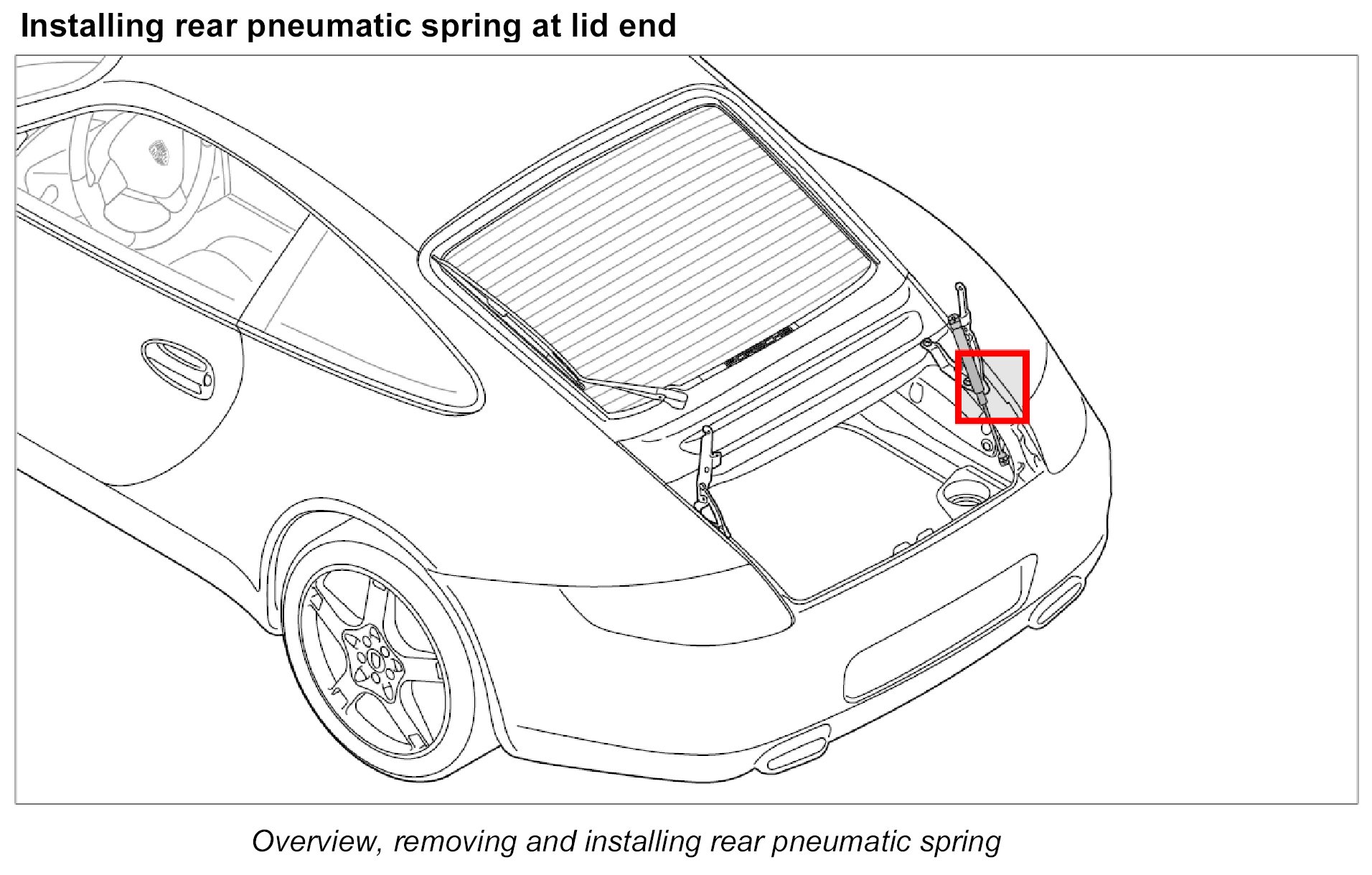 Installing rear pneumatic spring at lid end