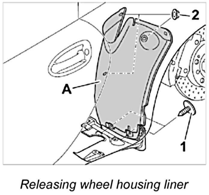 2. Remove wheel housing liner -A-.