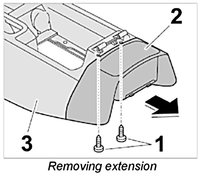 4. Unscrew fastening screws -1- and remove extension -2- from centre console -3-.