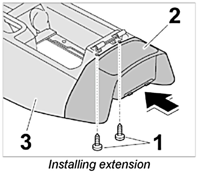 3. Position extension -2- on centre console -3- and secure with fastening screws -1-.