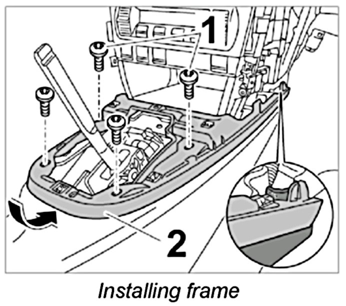 1. Loosen fastening screws -1- and take out frame -2- upwards.