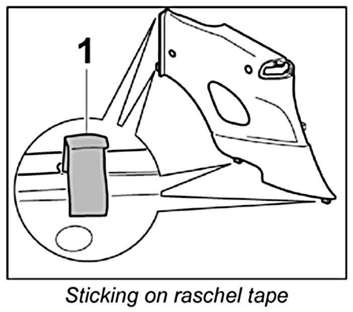 1.2. Wrap raschel tape -1- around the locking lugs on the rear side trim panel.