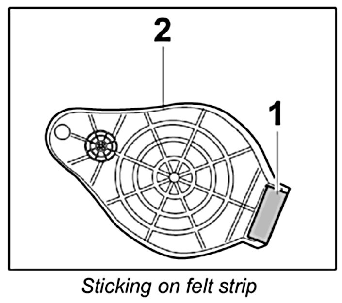 3.2. Stick felt strip -1- on the connection tab for the loudspeaker -2-.