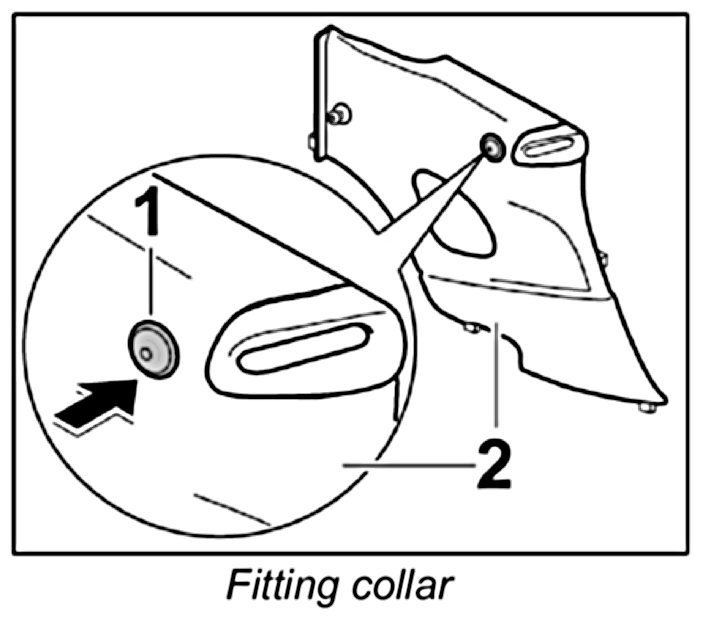 2. Press collar and felt ring -1- into the rear side trim panel -2-.