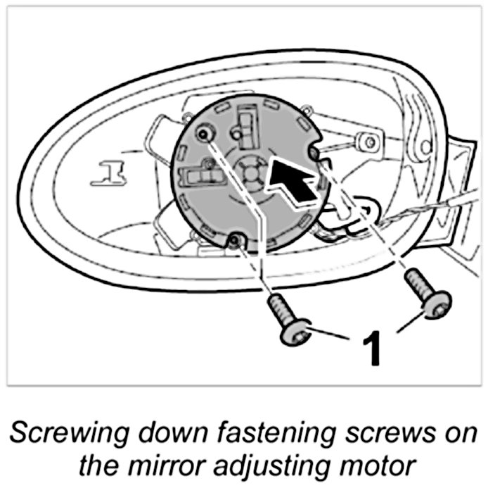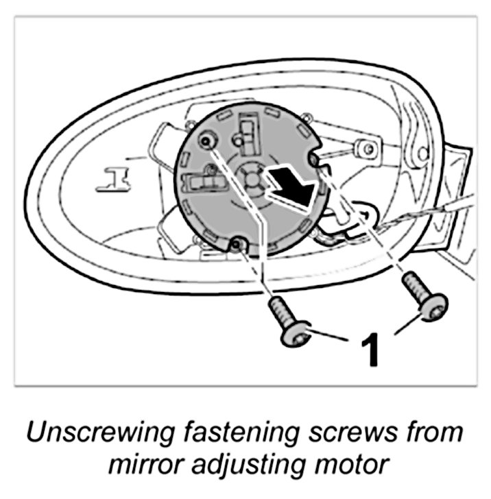 2. Unscrew the three fastening screws -1- from mirror adjusting motor.
