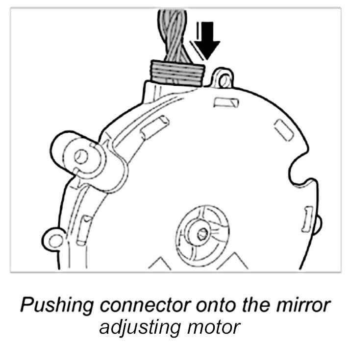 1. Push connector onto mirror adjusting motor until it is felt to engage.