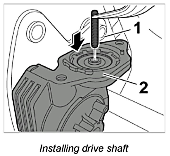 1. Insert the drive shaft -1- into the gear mount -2- by twisting slightly.