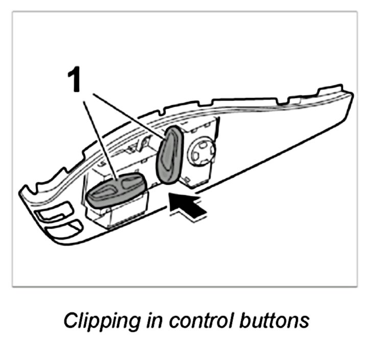 1. Carefully unclip the two control buttons -1- using a plastic wedge.