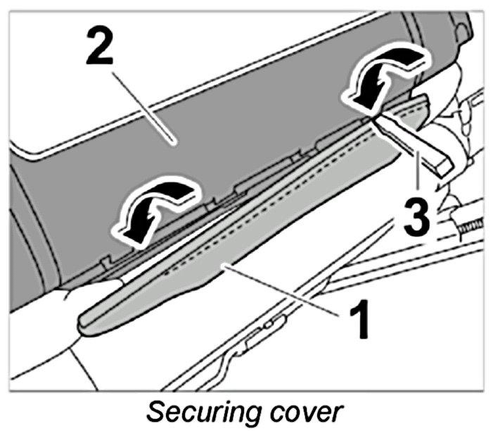 4. Press cover for backrest -1- into the backrest shell -2- at the bottom using a plastic wedge -3-.