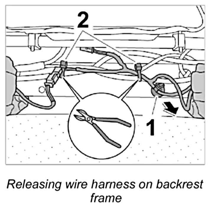 1. Release wire harness on backrest frame.