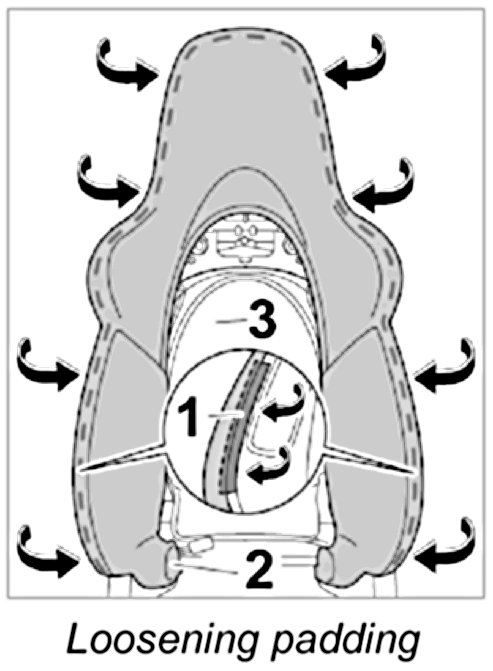 1. Disengage padding -1- laterally from the cushion carrier -3-.