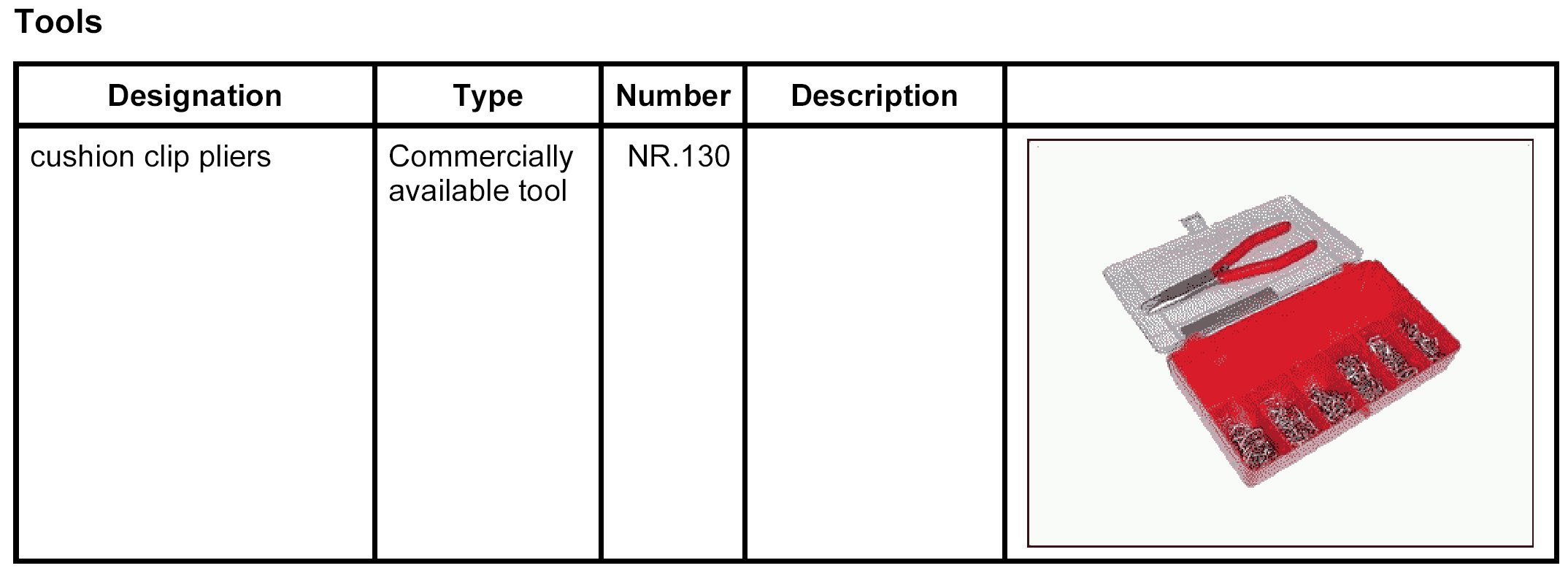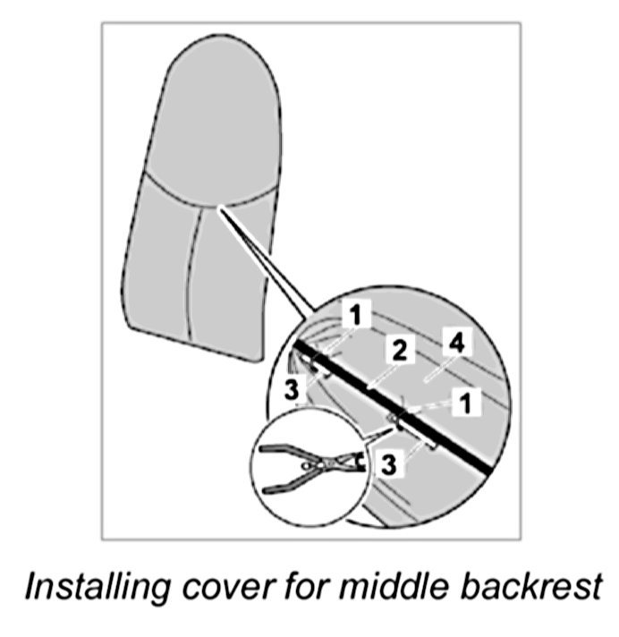 1. Position piping -2- for cover for middle backrest and padding -4- on the plastic frame -3-. Use the cushion clip pliers NR.130 and the cushion clips -1- to connect the cover strips and the plastic frame -3-.
