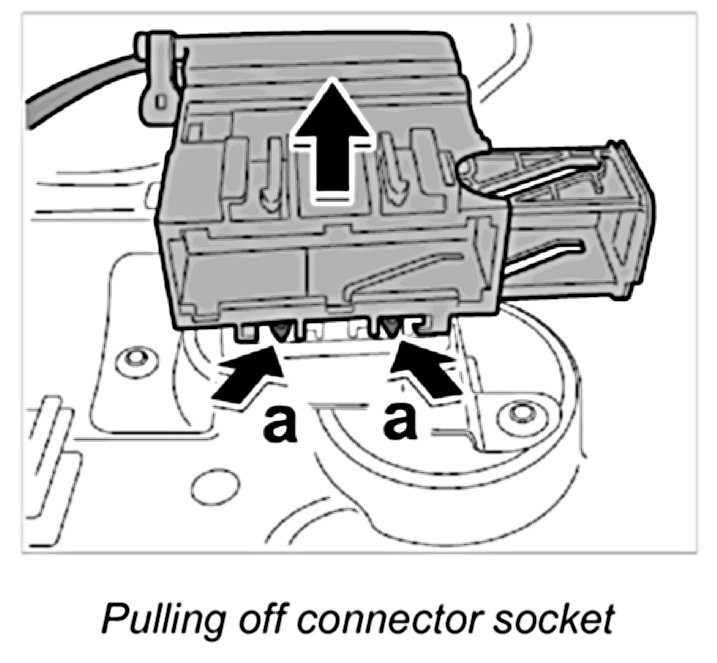 4. Release connector socket -arrows a- and pull out of holder.
