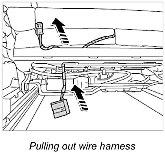 7. Pull wire harness out through the seat frame.