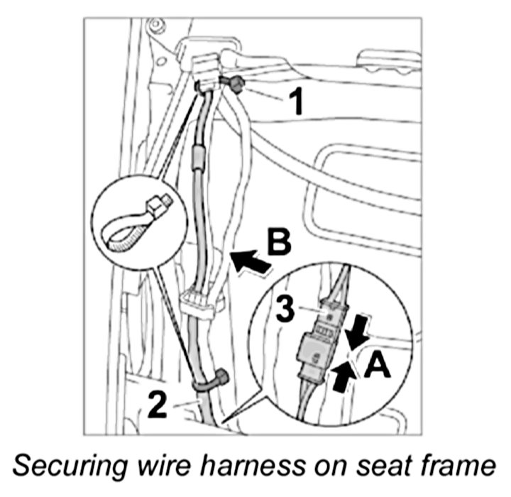 1. Pull wire harness through the seat frame.