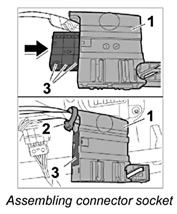 4. Press the three individual connectors -3- into the connector socket -1- until they engage firmly.