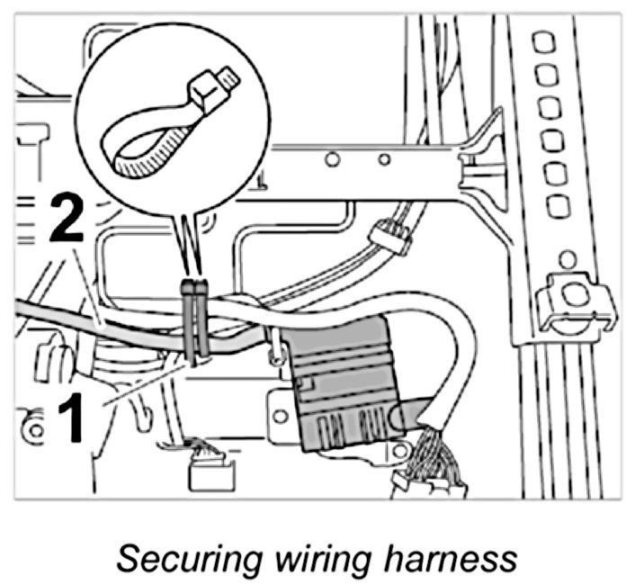 7. Secure wire harness -2- with new tie-wraps -1-.