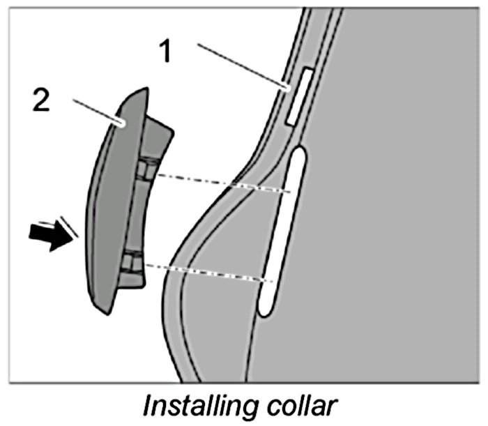 3. Position collar -2- on the cushion carrier -1- and press in until it clicks into place.