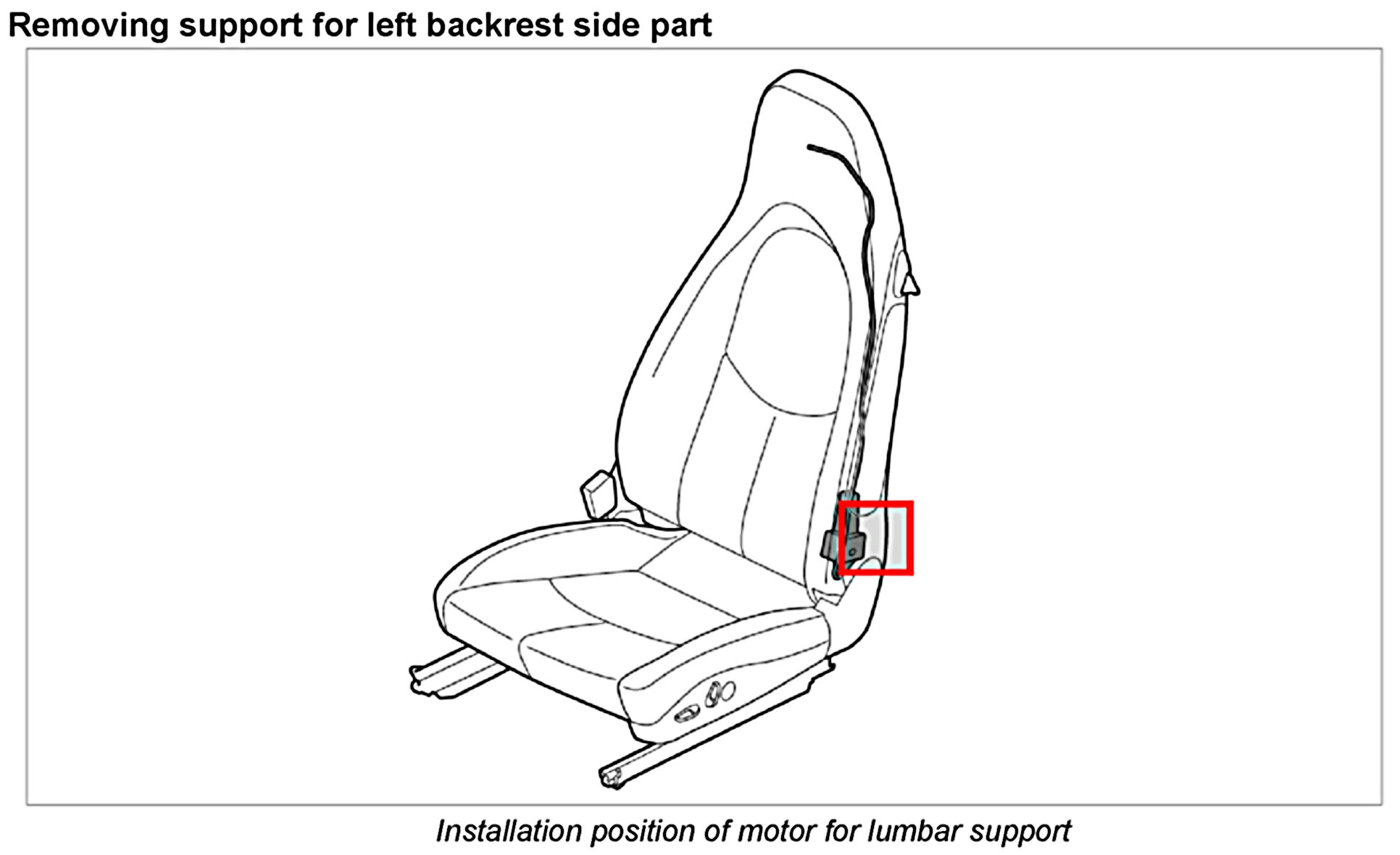 2. Remove left air cushion for backrest. Refer to Removing and installing air cushion for backrest