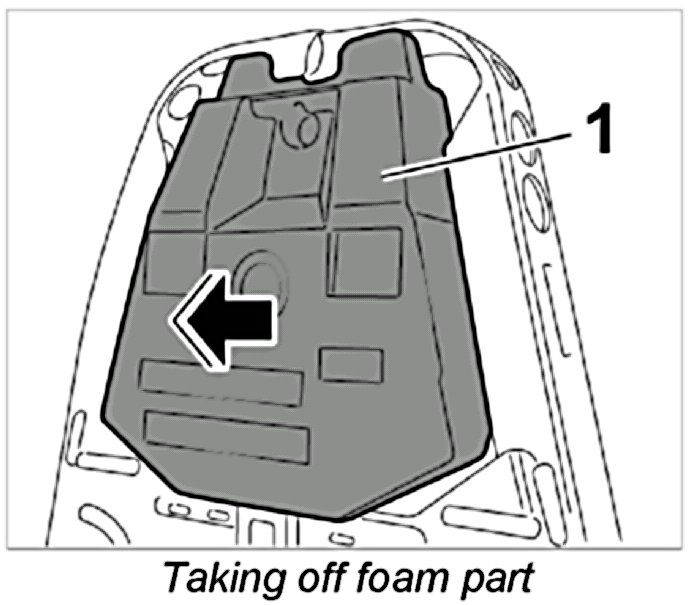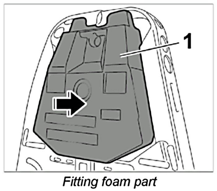 Make sure that the hoses are not pinched. Insert hoses exactly into the cut-outs on the foam part.