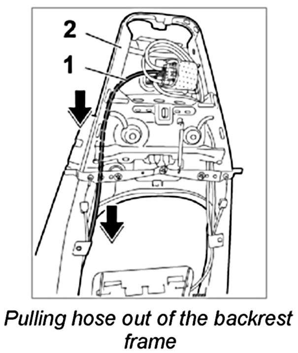 2. Pull the white hose -1- out of the backrest frame -2-.