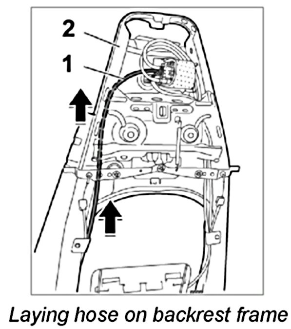 In vehicles with lumbar support, make sure the hoses are routed correctly in the area of the backrest side support.