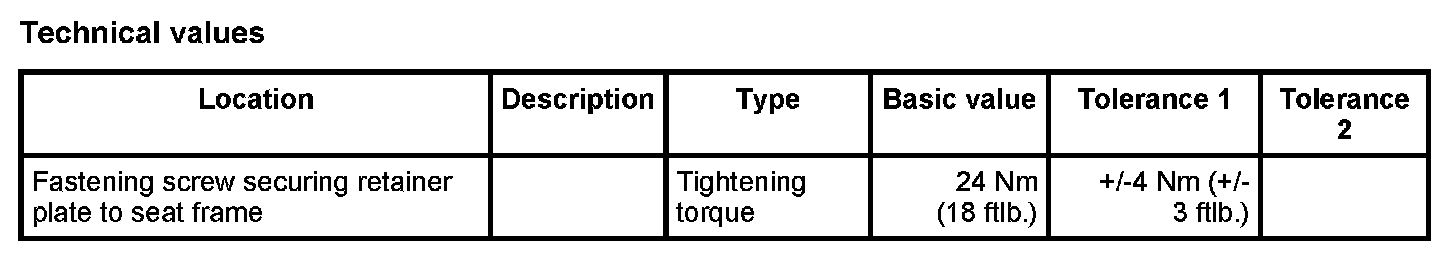 - On vehicles with an AWS sensor, the retainer plate must only be replaced together with the seat frame.