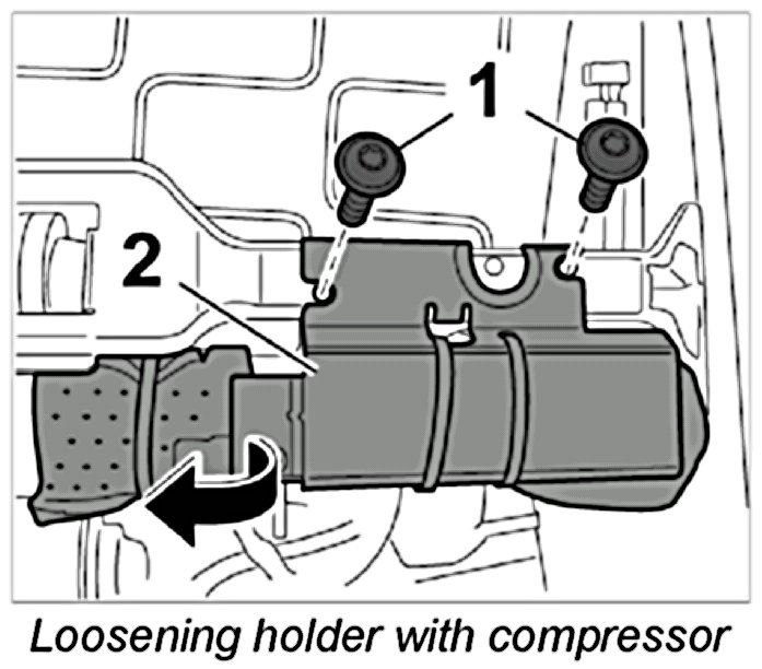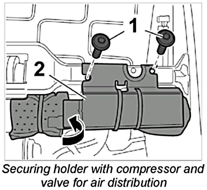 3.2. Move holder -2- with connected motor and control valve for air cushion to one side -arrow-.