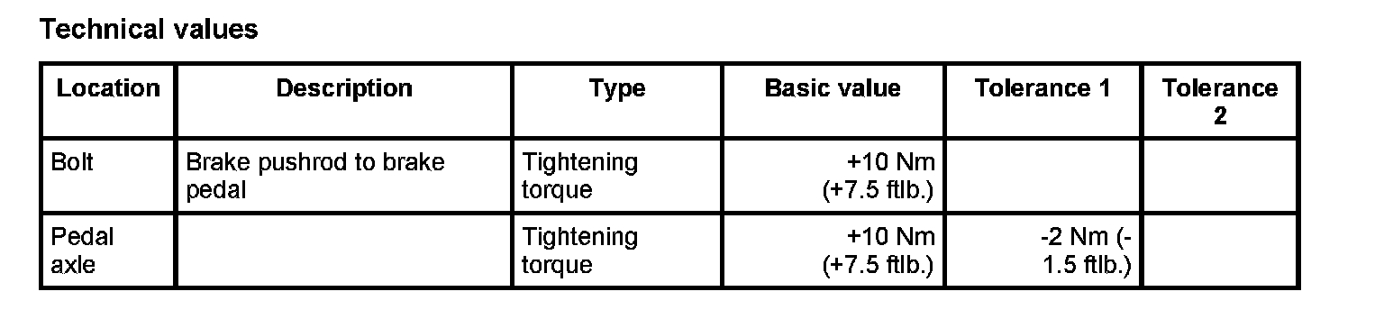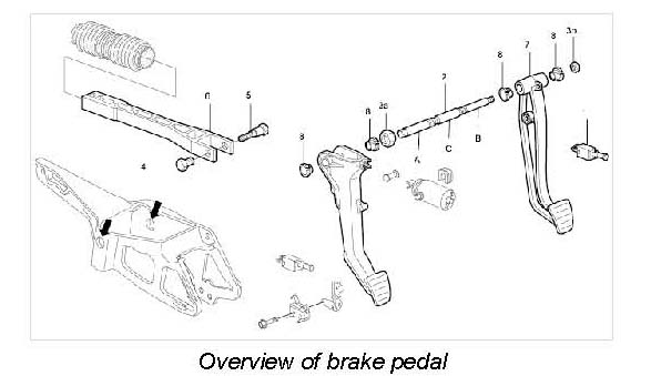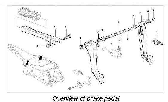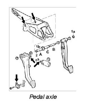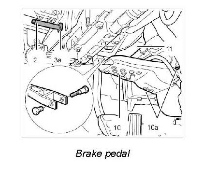 The brake pedal can only be removed when the clutch pedal has been removed.