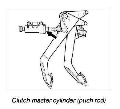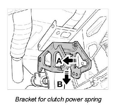 Note: When removing the bracket for the clutch power spring, carefully guide the master cylinder valve pushrod past at the clutch pedal.