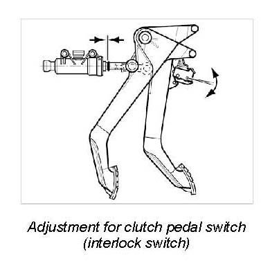 5. Check adjustment for clutch pedal switch (and interlock switch, if necessary).