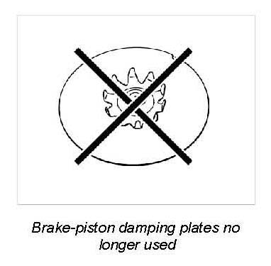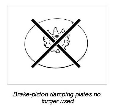 With the introduction of modified brake pads - Pagid P40-3 - the brake-piston damping plates are no longer used. Refer to the Parts Catalogue for details of use/allocation.