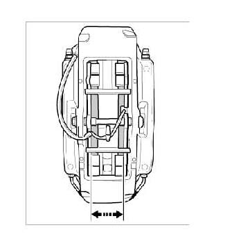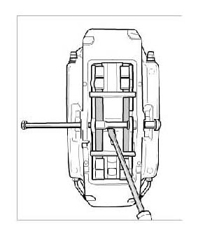 2. If necessary, push the brake pistons back into their original position using the brake piston resetting fixture 9472 (for 6-piston brake calliper).