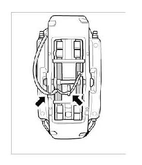2. Remove warning contact wire at the brake calliper and expanding spring. Remove warning contacts from the disc brake pads.