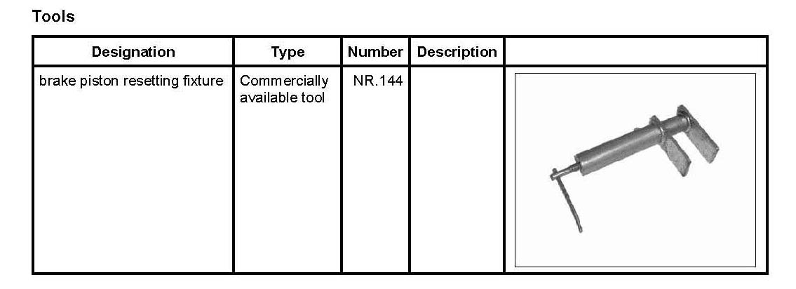 2. If necessary, push the brake pistons back into their original position using the brake piston resetting fixture NR.144.