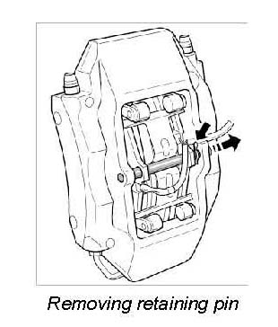 5. Fit new expanding spring, new retaining pin and new retainer. These parts are available as a repair kit and must be replaced each time the pads are changed.