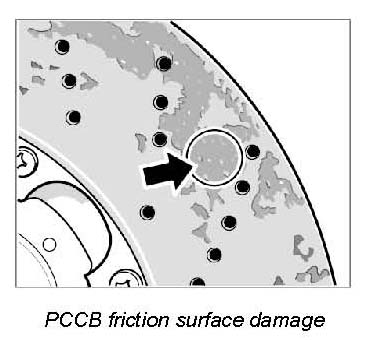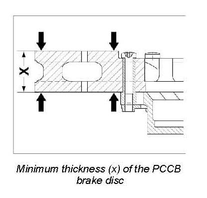 ^ In such cases, only one brake disc may need to be replaced if the friction area surface of the other PCCB brake disc is still completely OK.