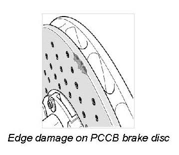 Irrespective of wear, a brake disc change can be necessary on the brake disc friction surfaces due to edge damage! In such cases, only one brake disc may need to be replaced if the friction area surface of the other PCCB brake disc is still completely OK .