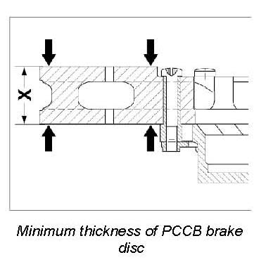 Three criteria governing the condition of the parts can make replacement necessary depending on the wear of PCCB brake discs: