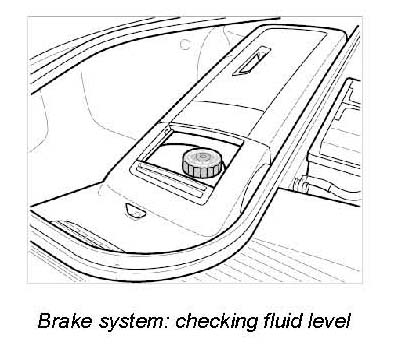 7. Check brake fluid level and correct if necessary. The brake fluid level must be between the MAX-MIN marking.