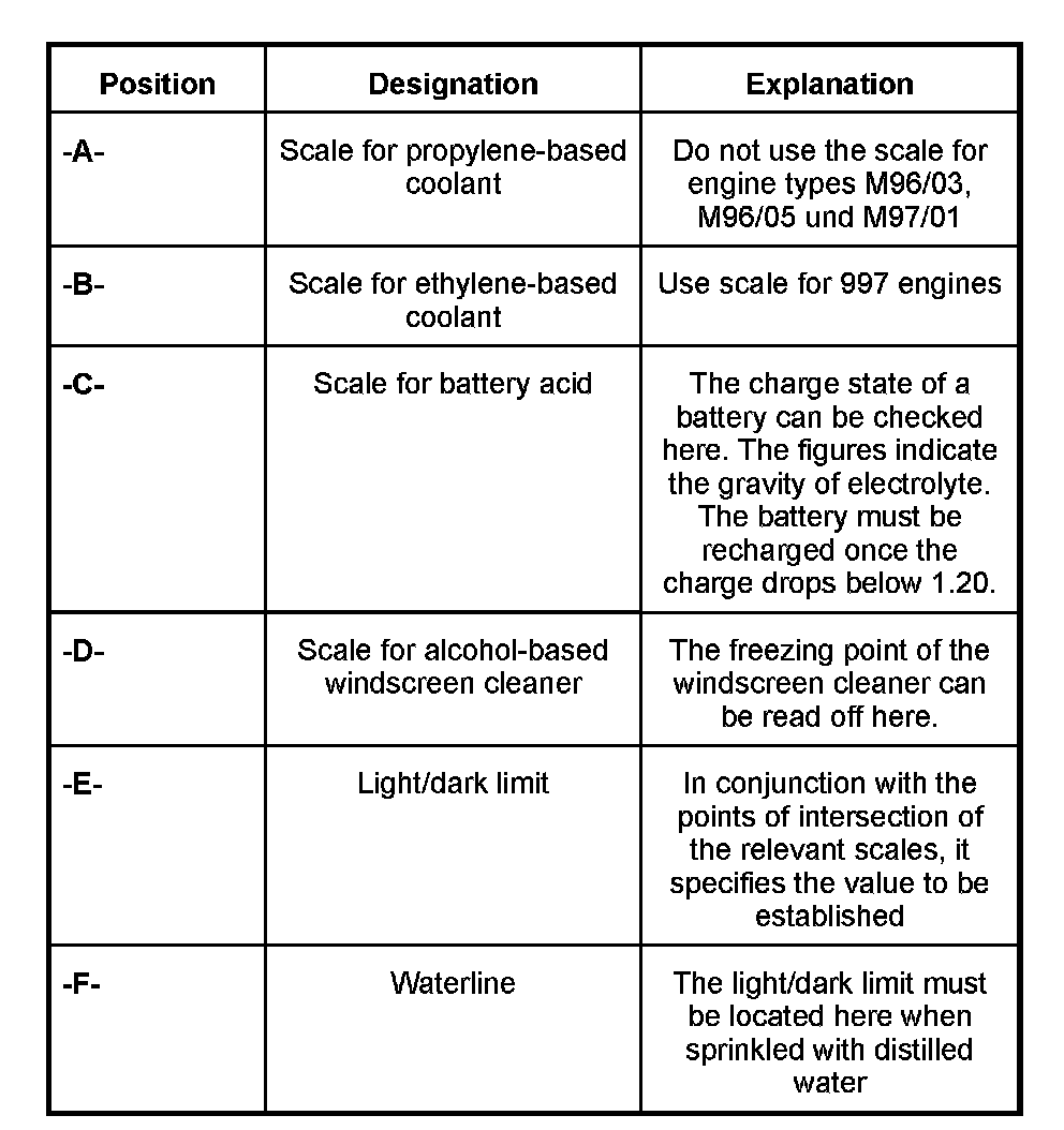 ^ Use the "ETHYLENE" scale for Porsche coolant.