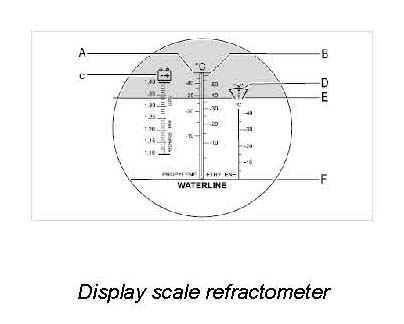 4. Hold the refractometer against a bright light source. A clear light/dark limit emerges. The point of intersection between this line and the display scale marks the freezing point of the coolant. A freezing point that is too low must be adjusted according to the table below