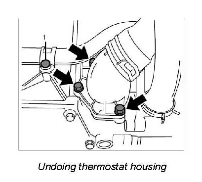 3. Remove housing, take out thermostat. Collect the emerging coolant.